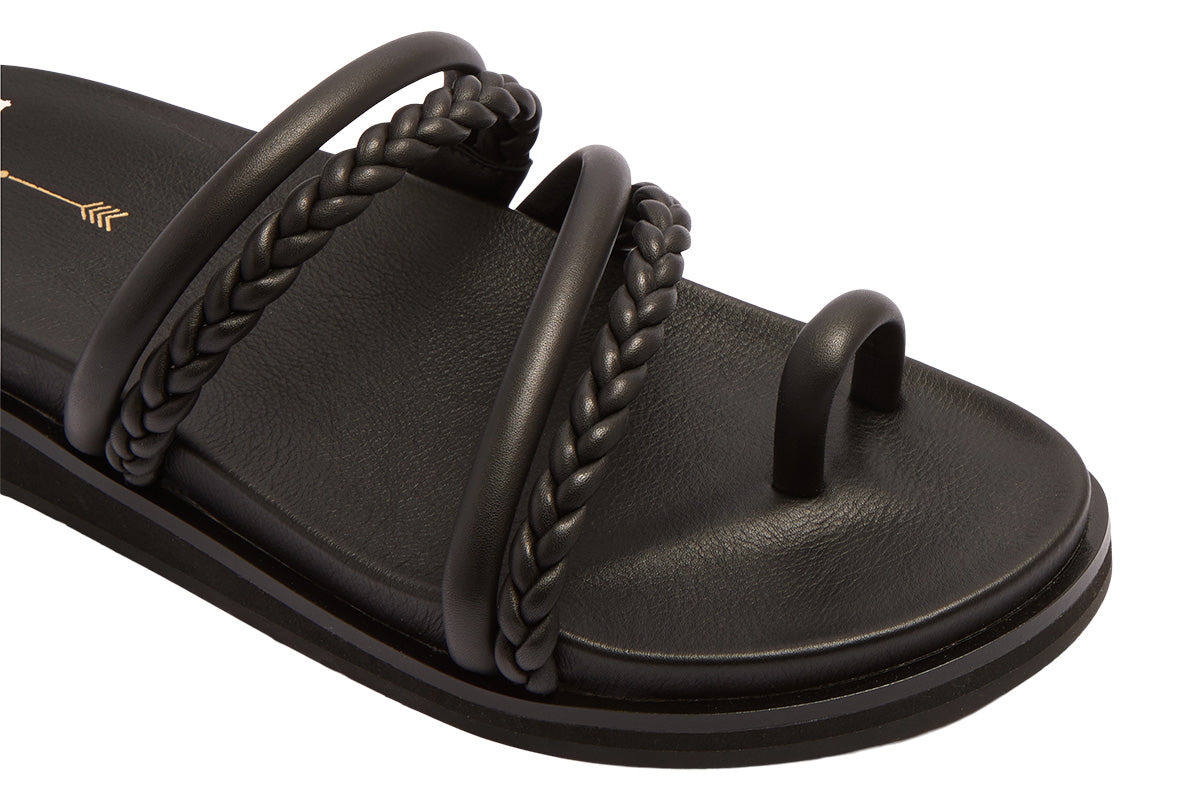 With Frankie4's Willow in the new, stylish Black Braid you can find the ideal blend of maximalist comfort and minimalist design. Willow blends premium leather with cutting-edge footbed technology, including a triple-layered cushion and support system, soft straps with hand-braided detail, a toe loop, and long-lasting rubber soles.