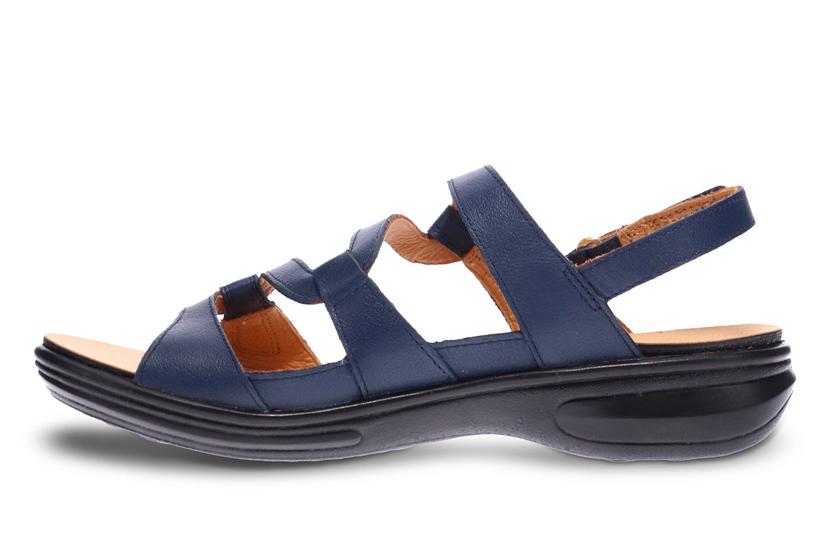 A versatile back strap sandal that is available in an assortment of colours and two widths. The contoured footbed cushions and supports the foot and is removable to allow for custom footbeds.